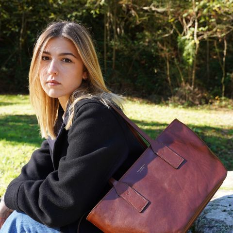 BORSA DA VIAGGIO CHIUSA CON LAMPO E FIBBIE DI SICUREZZA.TASCA ANTERIORE E TASCA INTERNA.TRACOLLA IN PELLE